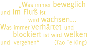 Leben ist gekennzeichnet durch Bewegung. Die Vitalität unseres Körpers, unseres Geistes, unser Emotionen und Spiritualität findet ihren Ausdruck in Bewegung.